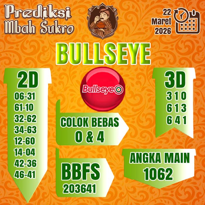 PREDIKSI MBAH SUKRO BULLSEYE MINGGU 22 MARET 2026