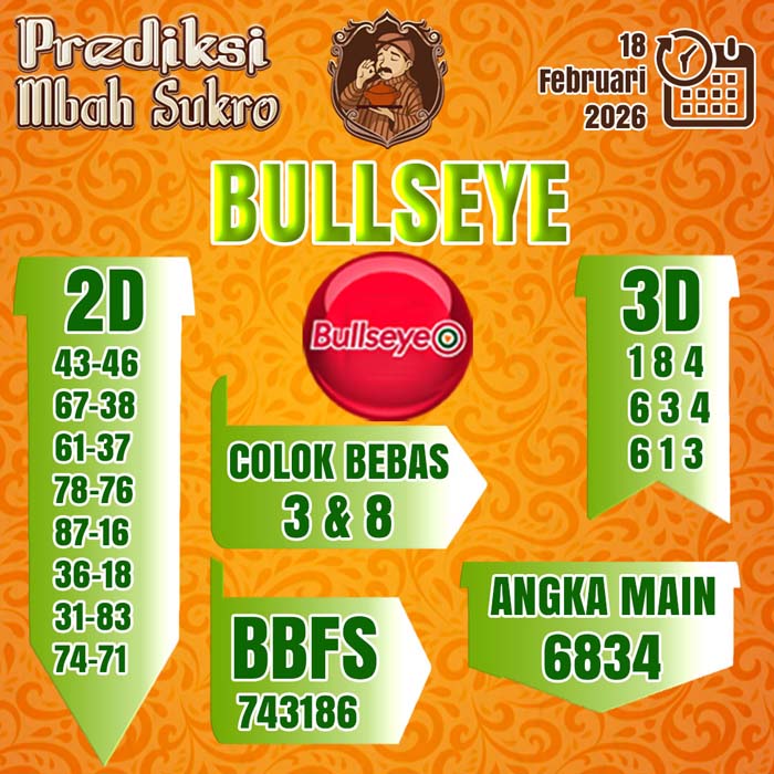 PREDIKSI MBAH SUKRO BULLSEYE RABU 18 FEBRUARI 2026