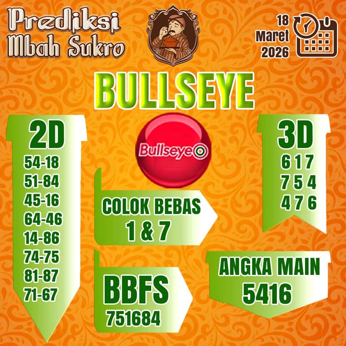 PREDIKSI MBAH SUKRO BULLSEYE RABU 18 MARET 2026
