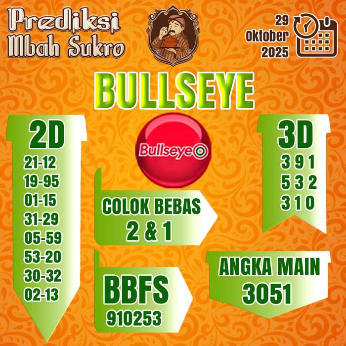 PREDIKSI MBAH SUKRO BULLSEYE RABU 29 OKTOBER 2025