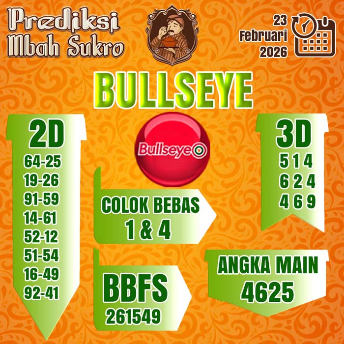 PREDIKSI MBAH SUKRO BULLSEYE SENIN 23 FEBRUARI 2026