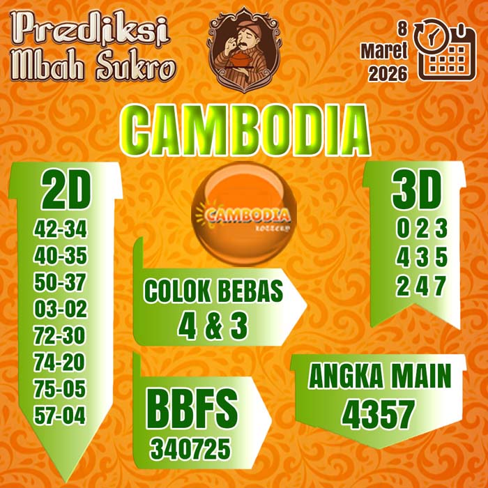 PREDIKSI MBAH SUKRO CAMBODIA MINGGU 8 MARET 2026