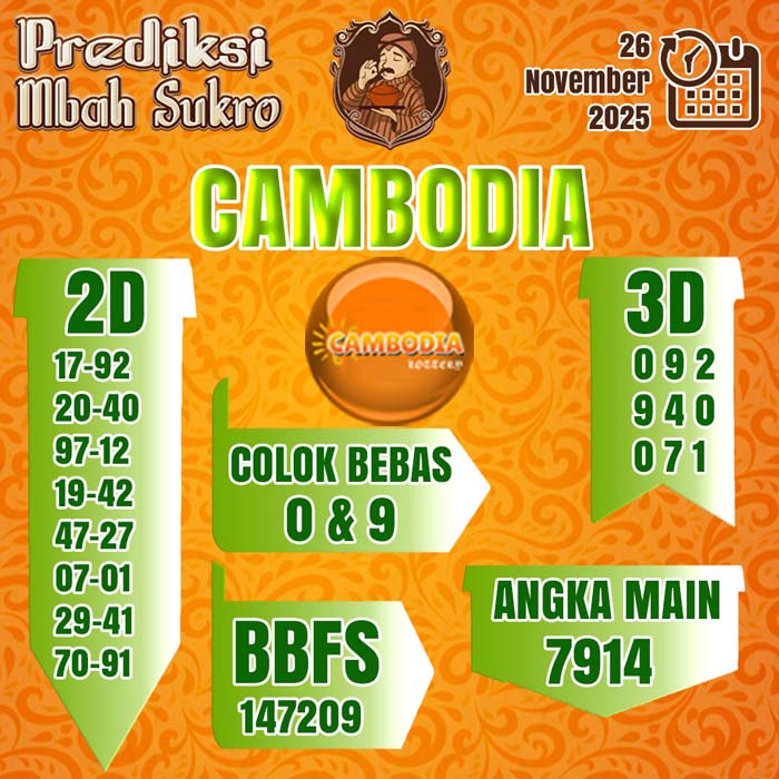 PREDIKSI MBAH SUKRO CAMBODIA RABU 26 NOVEMBER 2025
