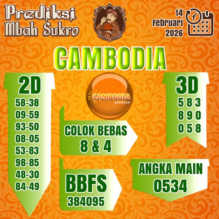 PREDIKSI MBAH SUKRO CAMBODIA SABTU 14 FEBRUARI 2026