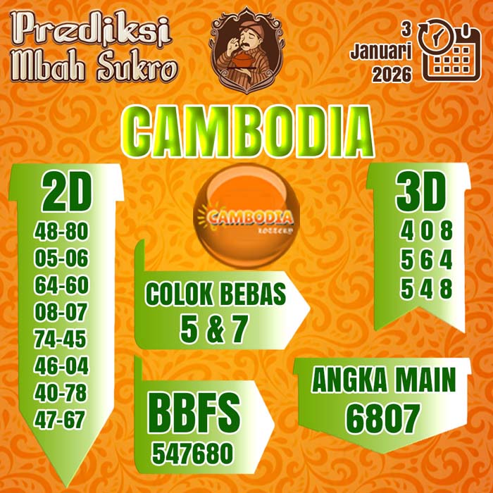PREDIKSI MBAH SUKRO CAMBODIA SABTU 3 JANUARI 2026
