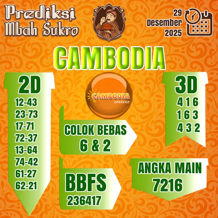 PREDIKSI MBAH SUKRO CAMBODIA SENIN 29 DESEMBER 2025