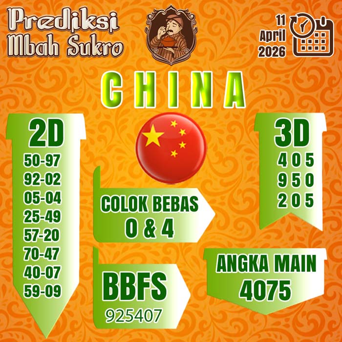 PREDIKSI MBAH SUKRO CHINA SABTU 11 APRIL 2026