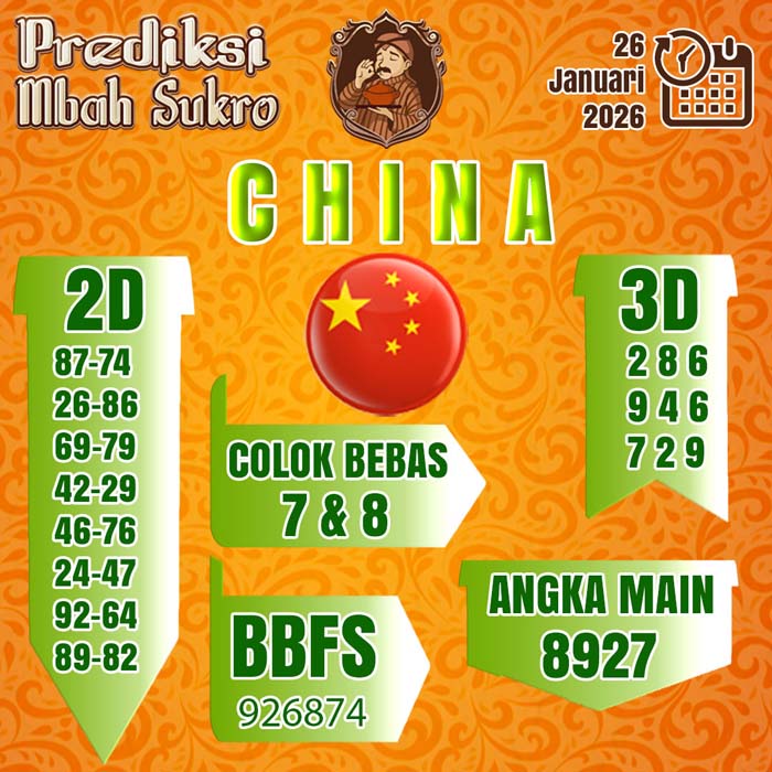PREDIKSI MBAH SUKRO CHINA SENIN 26 JANUARI 2026