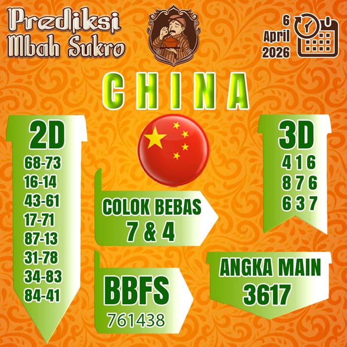 PREDIKSI MBAH SUKRO CHINA SENIN 6 APRIL 2026