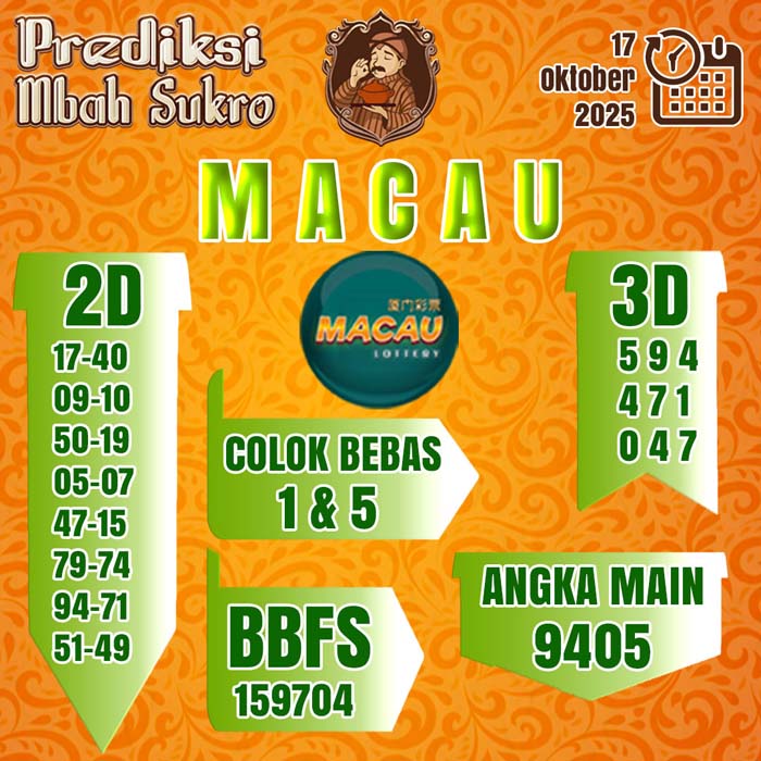 PREDIKSI MBAH SUKRO MACAU JUMAT 17 OKTOBER 2025