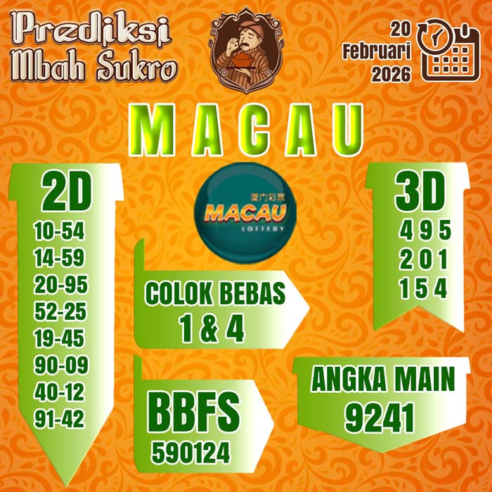 PREDIKSI MBAH SUKRO MACAU JUMAT 20 FEBRUARI 2026