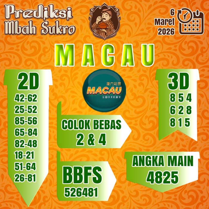 PREDIKSI MBAH SUKRO MACAU JUMAT 6 MARET 2026