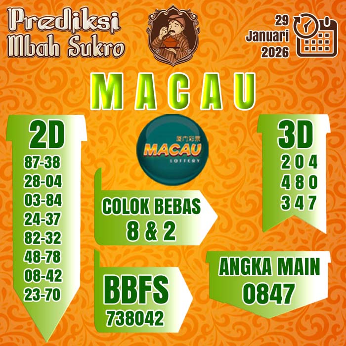 PREDIKSI MBAH SUKRO MACAU KAMIS 29 JANUARI 2026