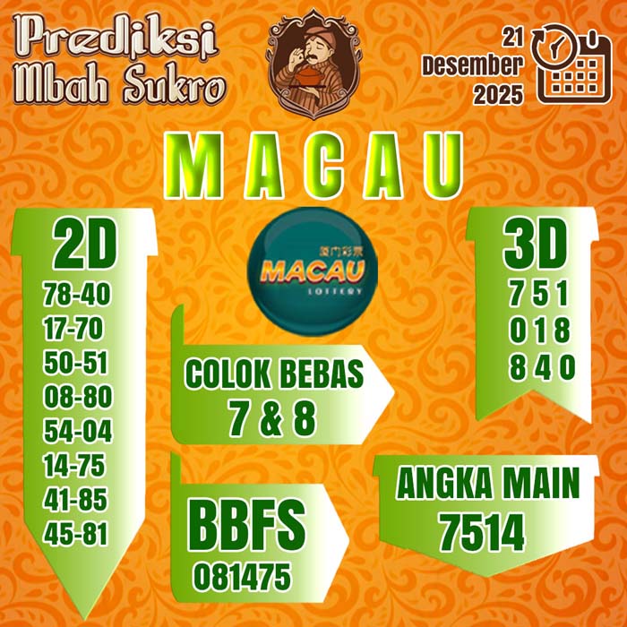 PREDIKSI MBAH SUKRO MACAU MINGGU 21 DESEMBER 2025