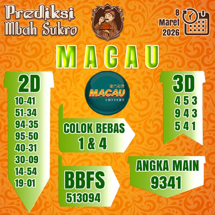 PREDIKSI MBAH SUKRO MACAU MINGGU 8 MARET 2026