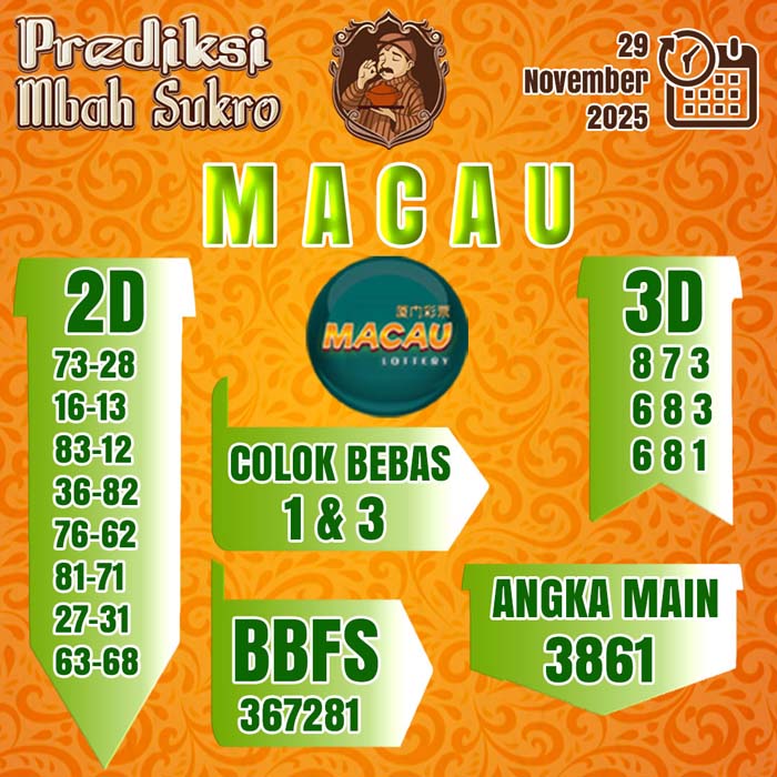 PREDIKSI MBAH SUKRO MACAU SABTU 29 NOVEMBER 2025