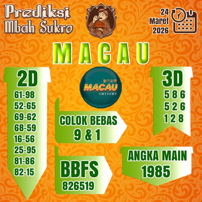 PREDIKSI MBAH SUKRO MACAU SELASA 24 MARET 2026