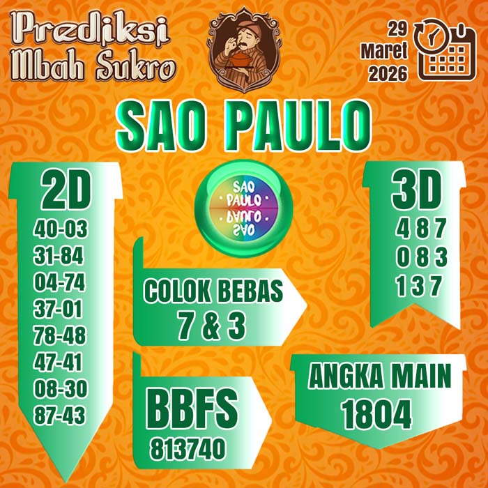 PREDIKSI MBAH SUKRO SAO PAULO MINGGU 29 MARET 2026