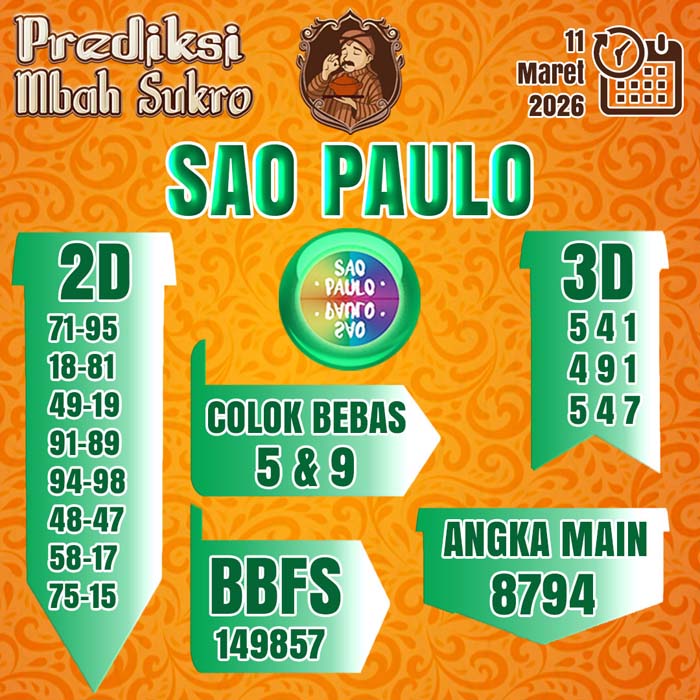 PREDIKSI MBAH SUKRO Sao Paulo HARI INI – Selamat datang sobat setia penggemar pasaran Sao Paulo TOGEL. Semoga semuanya dalam keadaan sehat selalu.