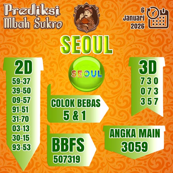 Tanpa berpikir panjang, yuk kita ke ramalan mbah sukro Seoul hari ini pasti teman – teman sudah tidak tahan dengan hasil prediksi Seoul mbah sukro :