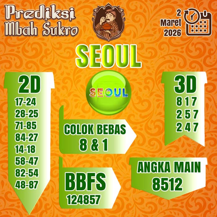 Tanpa berpikir panjang, yuk kita ke ramalan mbah sukro Seoul hari ini pasti teman – teman sudah tidak tahan dengan hasil prediksi Seoul mbah sukro :