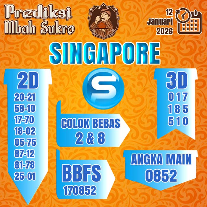 PREDIKSI MBAH SUKRO SINGAPORE SENIN 12 JANUARI 2026