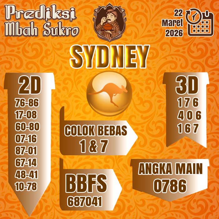 PREDIKSI MBAH SUKRO SYDNEY MINGGU 22 MARET 2026