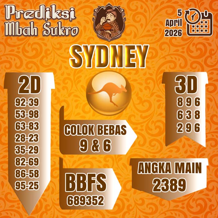 PREDIKSI MBAH SUKRO SYDNEY MINGGU 5 APRIL 2026
