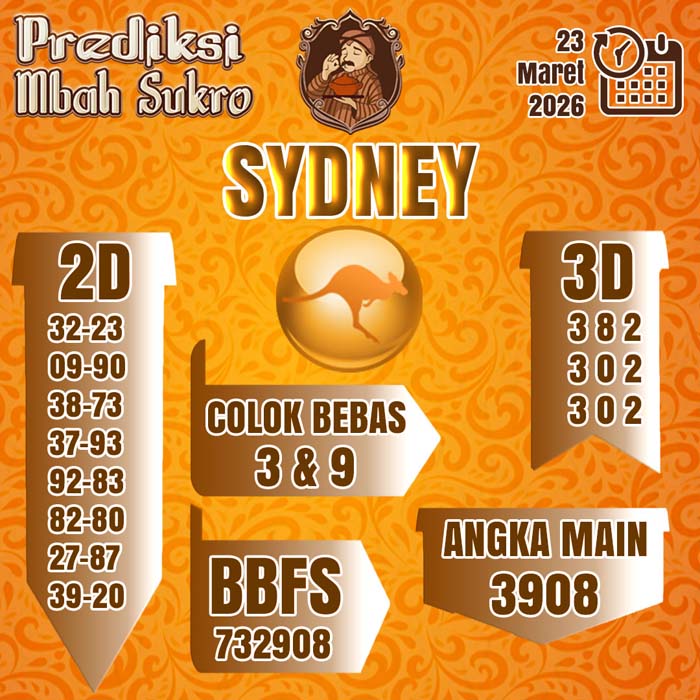 PREDIKSI MBAH SUKRO SYDNEY SENIN 23 MARET 2026