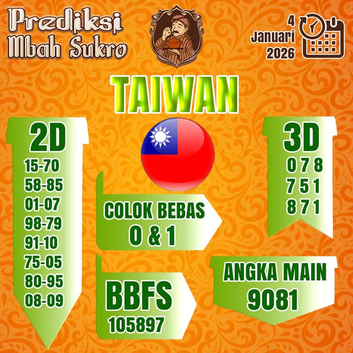 PREDIKSI MBAH SUKRO TAIWAN MINGGU 4 JANUARI 2026