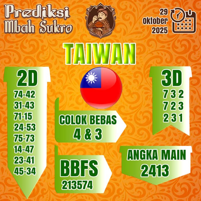 PREDIKSI MBAH SUKRO TAIWAN RABU 29 OKTOBER 2025