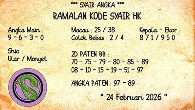 SYAIR PREDIKSI KELUARAN HK, 24-Feb-2026