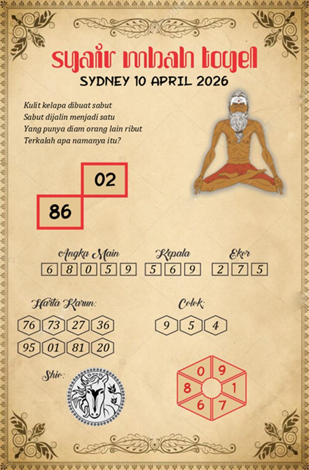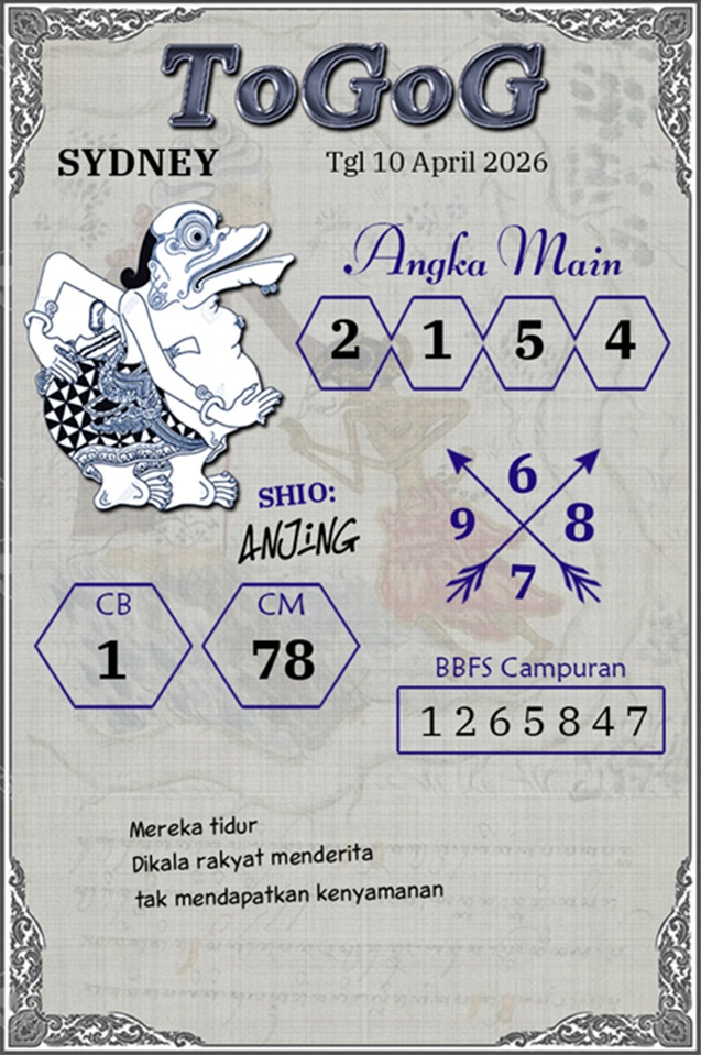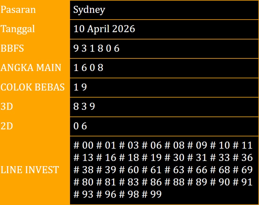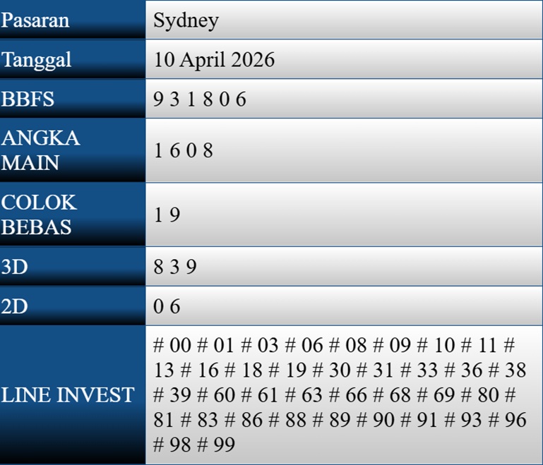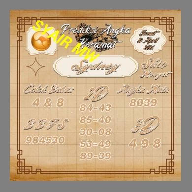 SYAIR PREDIKSI KELUARAN SYDNEY, 10-Apr-2026