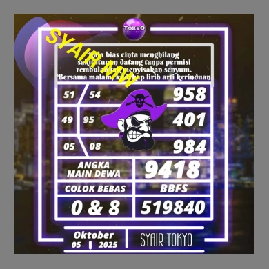 SYAIR PREDIKSI KELUARAN TOKYO, 5-Oct-2025